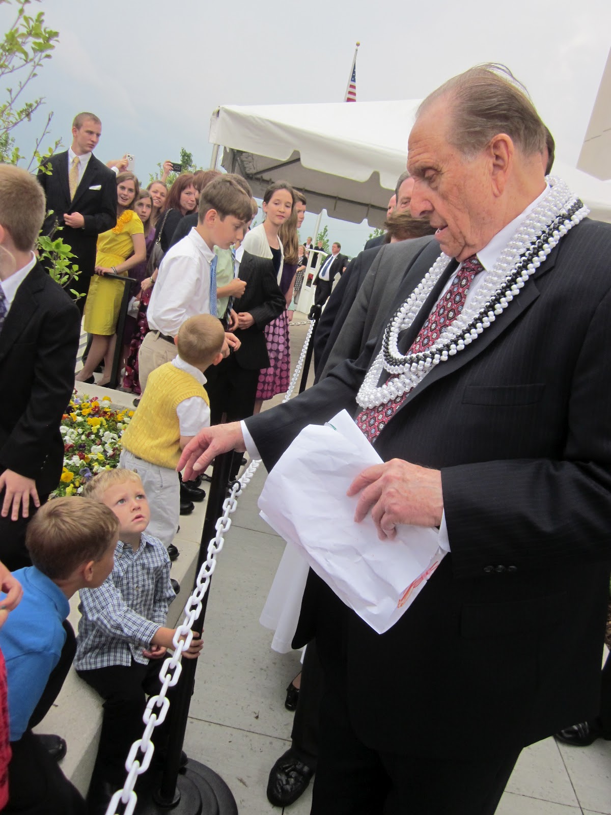 Then Ty said, "It's for you!" and handed it to him. A security guy tried to take it from President Monson, but the prophets said, "No! He said it was for me!" So sweet.