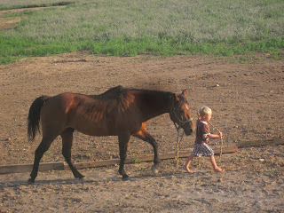 Ty tried to lead Horse Rider to the alfalfa (or as Robbie would say, "Alpha Alpha") but it was really Horse Rider doing the leading. Good thing he's a good horse!